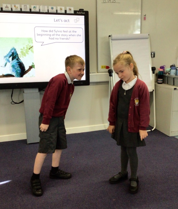 In English, we explored emotions in our text ‘Sylvia and Bird’. We discussed how the character would be feeling and what they would be doing to show this.