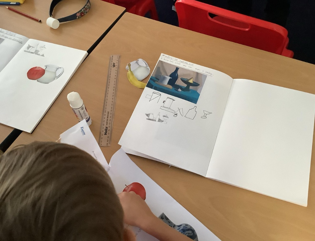 Check out the creative talent in Apple class. They are exploring ideas and developing new drawing techniques in their sketchbooks. The art unit this term is Still Life and we have been identifying common shapes in still life objects to help us draw them realistically.