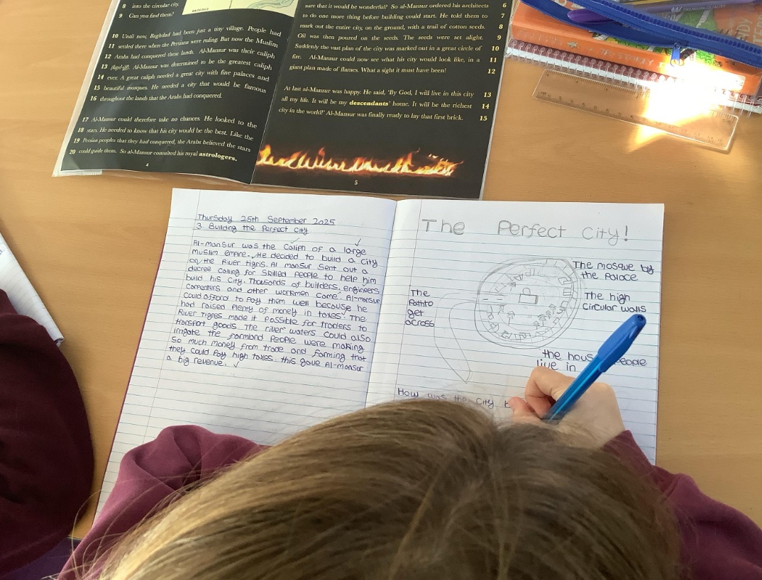 Beech class have been using their classification skills to create their own branching keys in science. They really showed off their understanding of different classes and did a great job. Beech class have been creating fairytales and making a great effort for their first English unit of the year! Their next unit is a non-fiction text called ‘Our Planet’. Beech have been learning about the building of Baghdad in 762 CE and the children have written about how it was built and how strict al-Mansur was with the workers. As you can see from the illustrations, it was a perfect circle, with brick walls that were 24m tall.