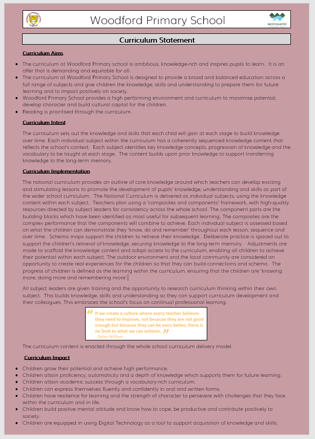 'Pupils gain knowledge and skills that are beyond many of their peers nationally. This is due to the strength of the curriculum they experience at the school.'  Ofsted, December 2024